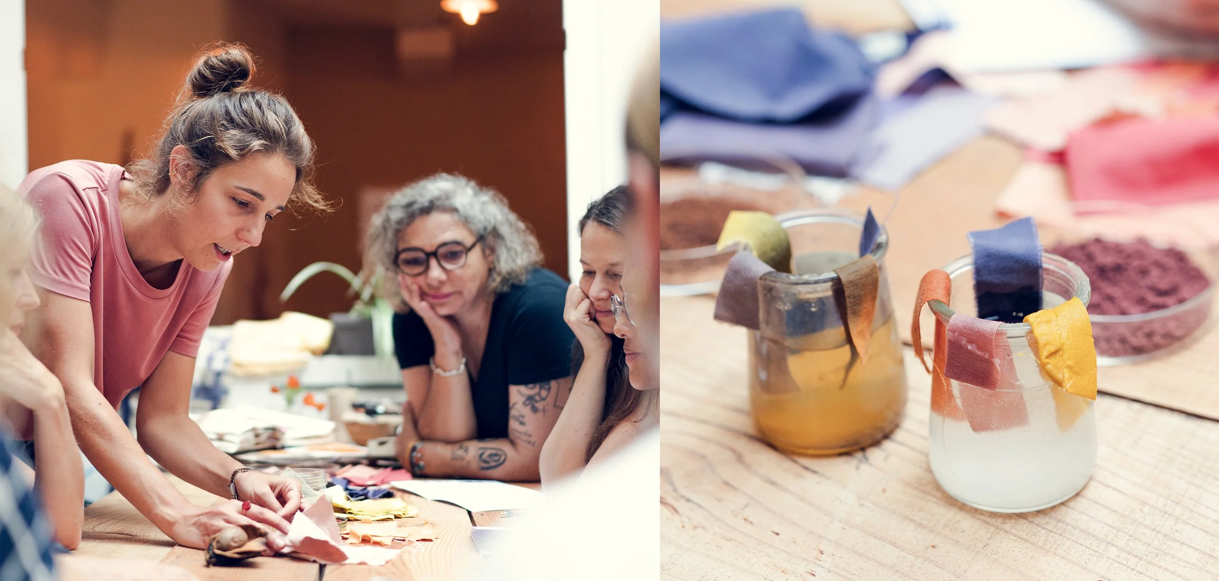 Les participantes ont pu appréhender les différentes plantes tinctoriales et leurs nuances ainsi que toutes les étapes pour une teinture naturelle réussie.