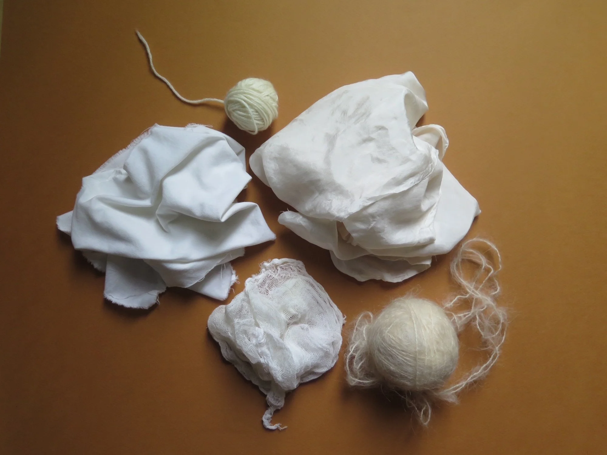 Pour tout textile teint avec des plantes, il faut que la fibre soit 100% naturelle ou avec un pourcentage de 20% maximum de fibres synthétiques (mais avec des résultats moins vifs et uniformes) pour que la couleur adhére au tissu, c’est-à-dire soit des fibres végétales (coton, lin, rami, chanvre, bamboo …) soit des fibres animales (laine et soie), cela peut être aussi un mélange de matières naturelles comme un 50% lin - 50% coton par exemple.