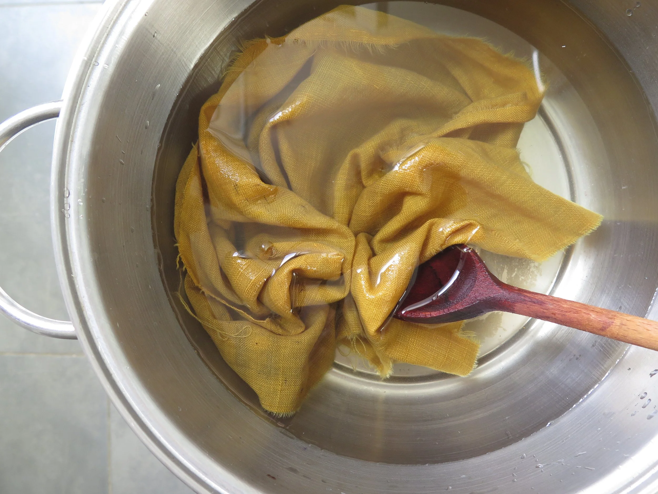 On immerge la fibre dans un bain de couleurs à base d’éléments végétaux = fleurs, écorces, feuilles, racines, fruits ...
